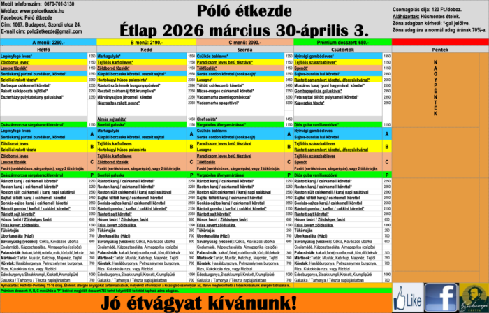 A helyszínen fizethet bankkártyával, SZÉP-kártyával, készpénzzel, étkezési utalvánnyal is.